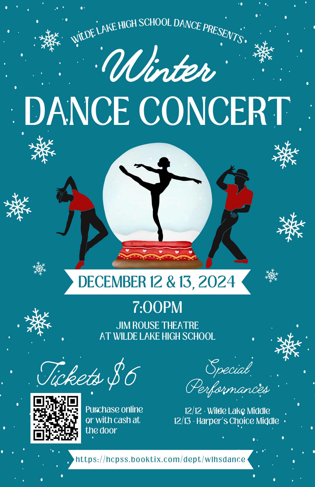 Come out to see the Wilde Lake High School Dance Companies & Classes in the Winter Dance Concert with special performances by Wilde Lake Middle School (12/12) and Harper's Choice Middle School (12/13)!